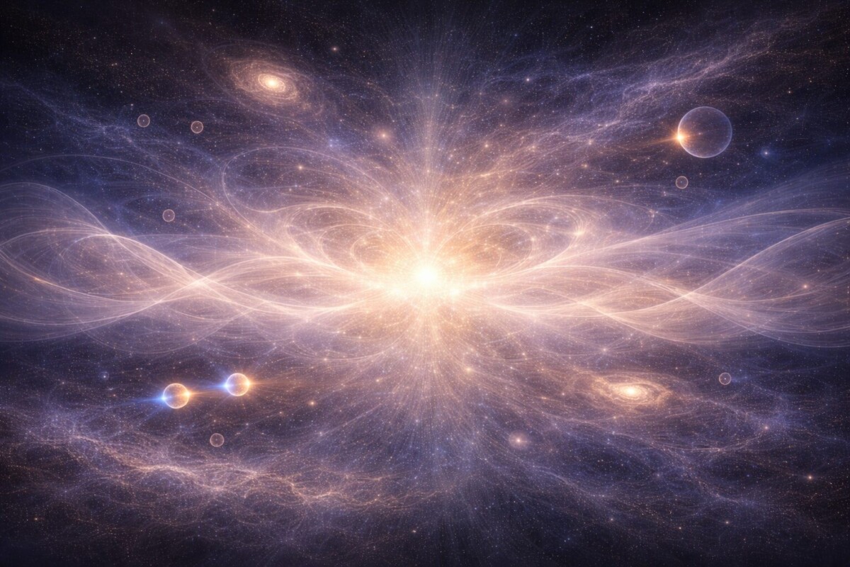 私たちの身体を構成する原子も、星々の光も、そのすべては「量子場のゆらぎ」が物質へと凝縮した結果であると説かれます。