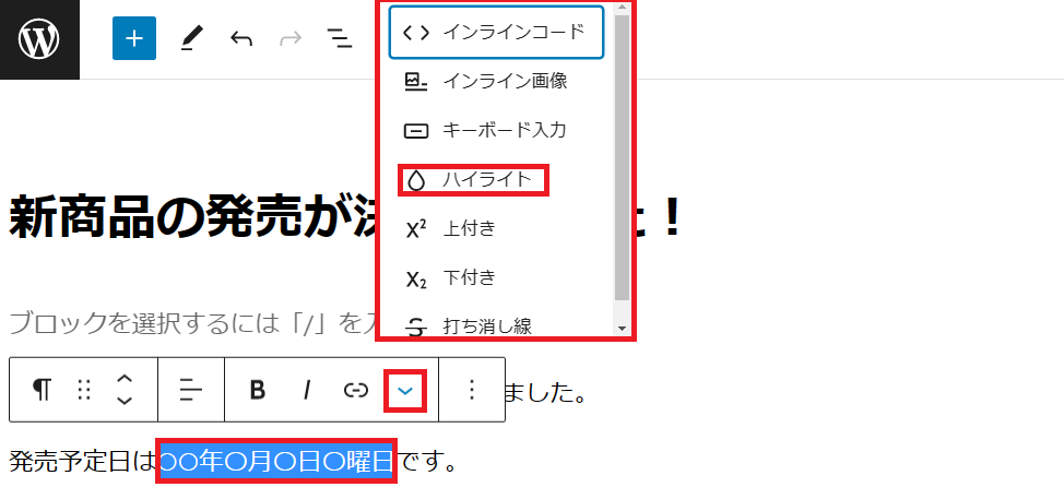 つぎは、投稿記事の文字の装飾とリンク挿入の手順です。