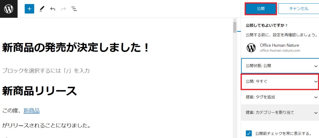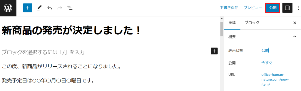 さいごに『公開』ボタンをクリックすれば、サイト上に正式に公開されます。ここまでが、記事を投稿するにあたっての最低限必要な手順になります。