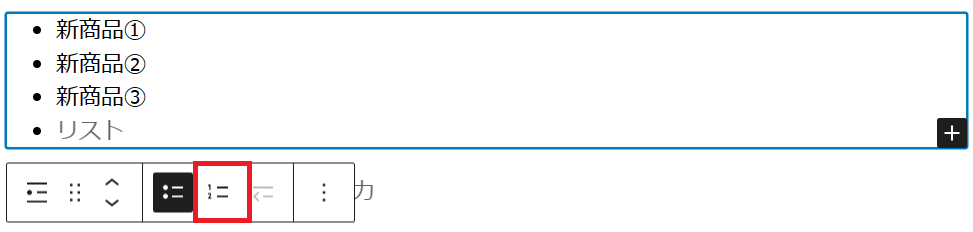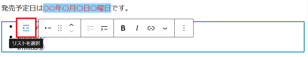 数字・順序付きのリストを作成する場合は、小窓の左側に表示されている『リストを選択』をクリックします。