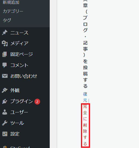 投稿記事を完全に削除する