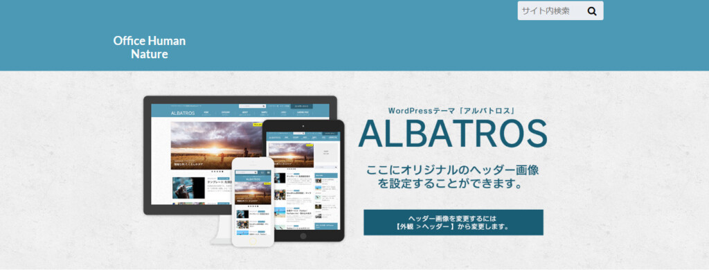 これでWordPressテーマの設定が完了です。上記解説の中で設定したテーマは、ブロガー専用WordPressテーマ「OPENCAGE(オープンケージ)」の「アルバトロス(現在販売終了)」です。