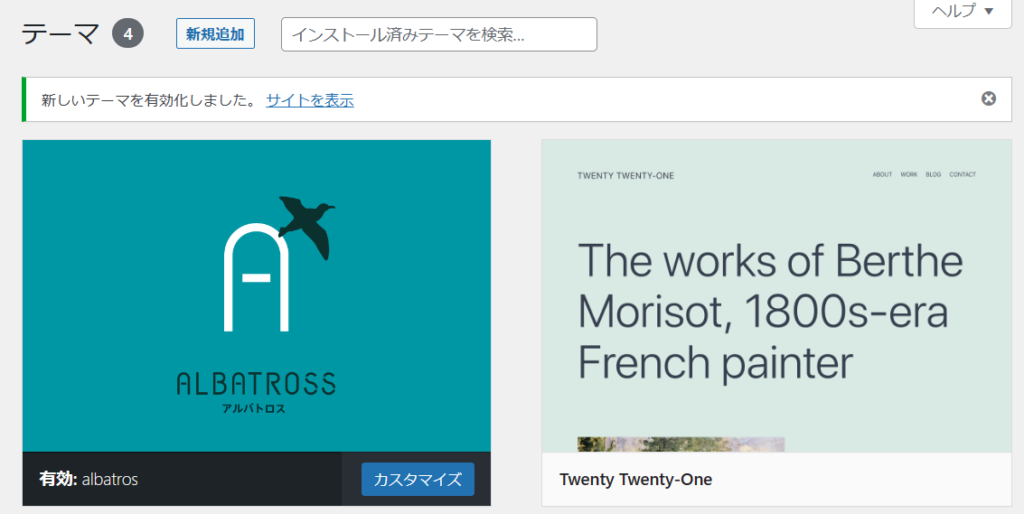 ⑤インストールしたテーマを『有効化』する
