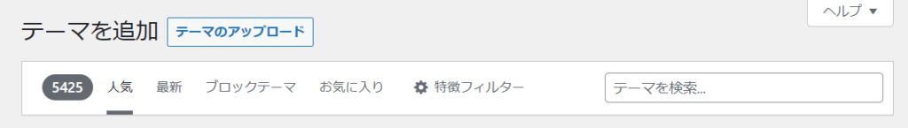 『新規追加』をクリックすると、上の画像のように「テーマを追加『テーマのアップロード』」が表示されますので、『テーマのアップロード』をクリックします。